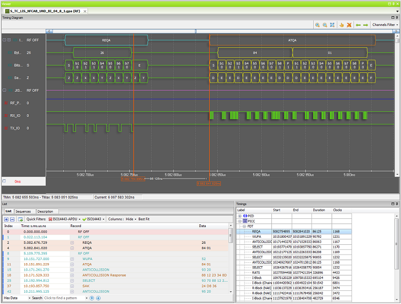 Platforms allow validation of a range of technologies including NFC, ISO14443, FeliCa (ISO18025), ISO15693 contactless (13.56 Mhz) protocols and SWP (HCI/HDLC), ISO7816, SPI and I2C contact protocols. Platform configuration and control can be done via a dedicated software interface (RGPA - Real Time Protocol Analyzer), or scripting (Python, JScript, ...) which allows users to define and execute sequences of signals in specific, automated scenarios.