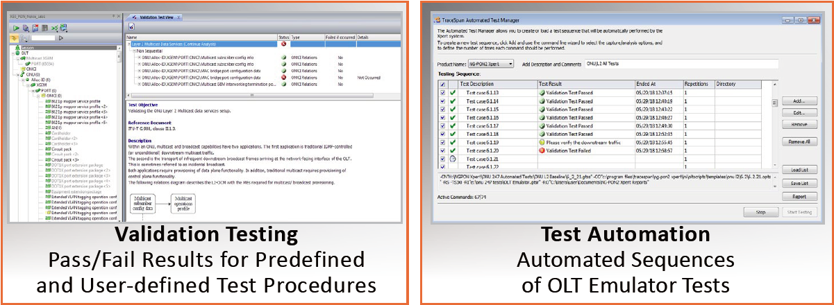 NG-PON Xpert还可以作为一个OLT模拟器,在独立的基础上测试ONU。它可以生成PLOAM消息来激活ONU,也可以作为OMCI主机来生成和传输OMCI消息。NG-PON Xpert OLT仿真器与分析器结合提供了一个集成的ONU一致性测试工具,该工具同时生成命令,分析ONU响应,将其行为与预期的一致性进行比较,并报告其检测到的任何不一致性。